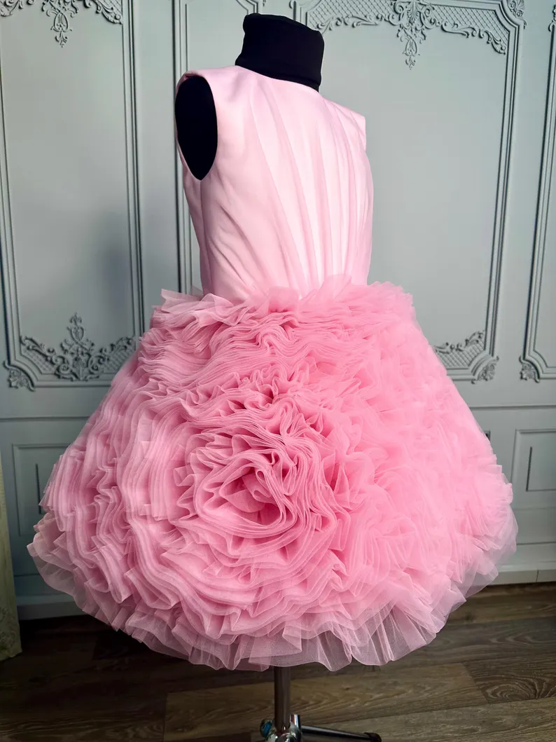 Like a cloud of cotton candy! Smooth satin bodice with elegant pleated front flows into the most magical ruffled tulle skirt – layer upon layer of soft, bouncy pink ruffles that create incredible volume and movement. Lightweight, breathable and fully cotton-lined for all-day comfort. Hidden zipper, no itch.Set includes: