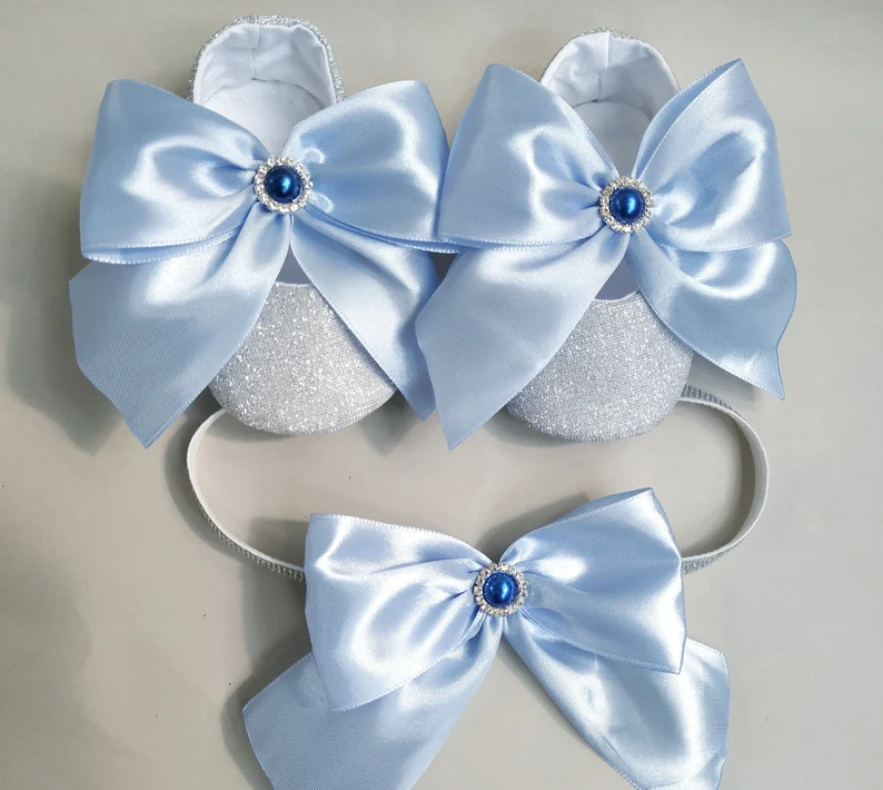 Glitter & Satin Baby Shoes Set | Cinderella Blue Bow