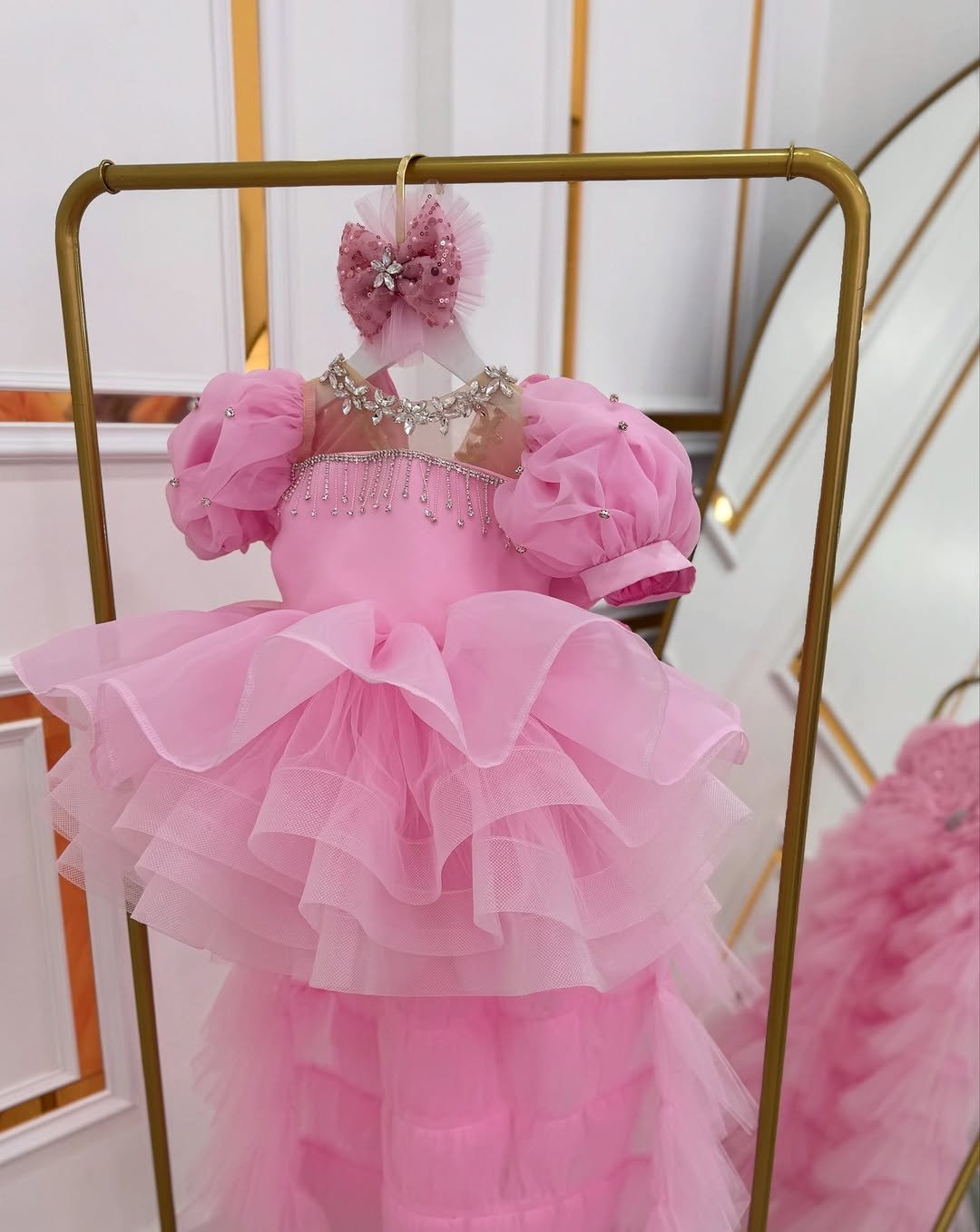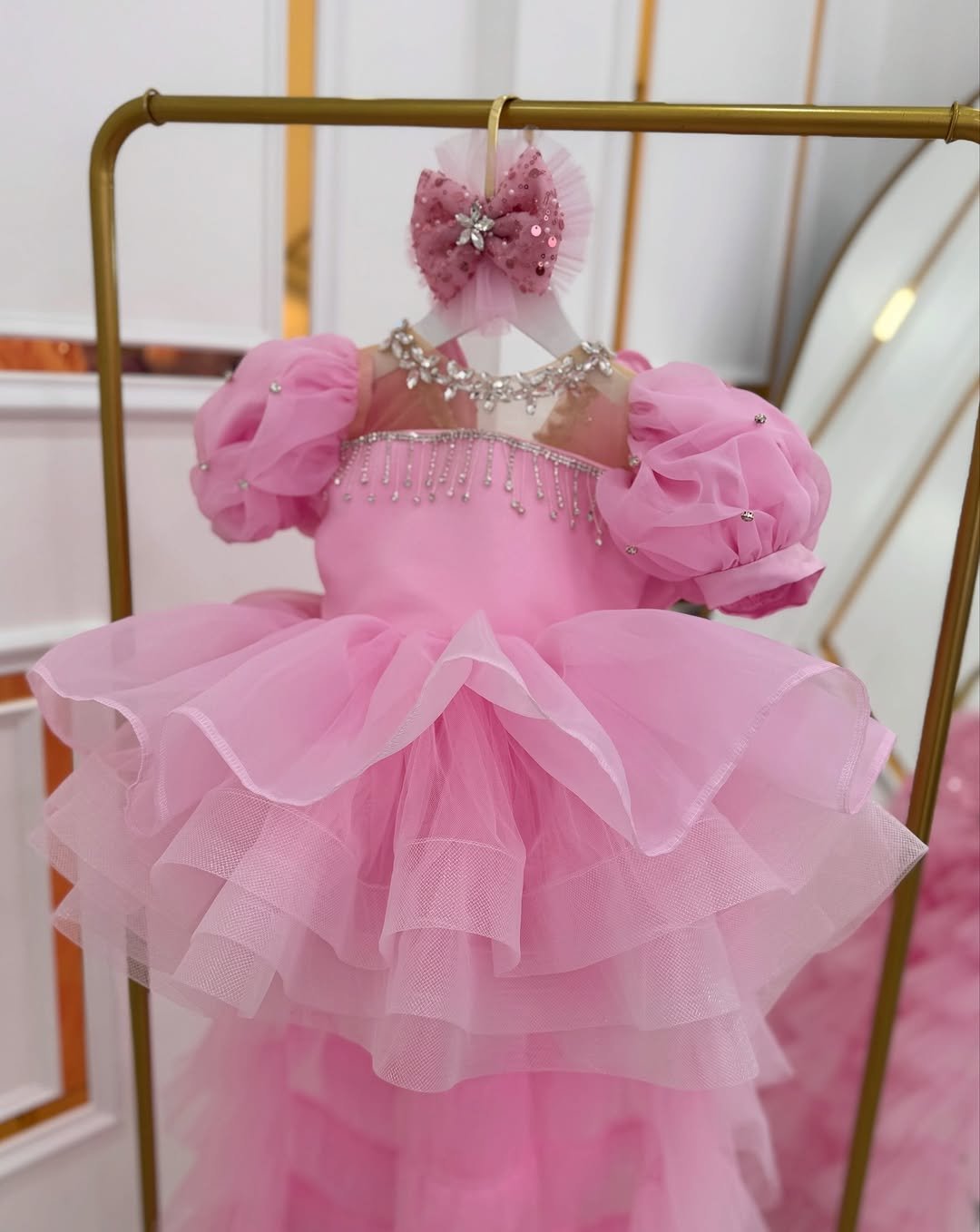 This exquisite gown is the perfect choice for a little one’s big day, as a dazzling piece from our special birthday collection. The dress blends beautiful sparkle with a grand silhouette, ensuring your little princess shines as the star of her celebration.