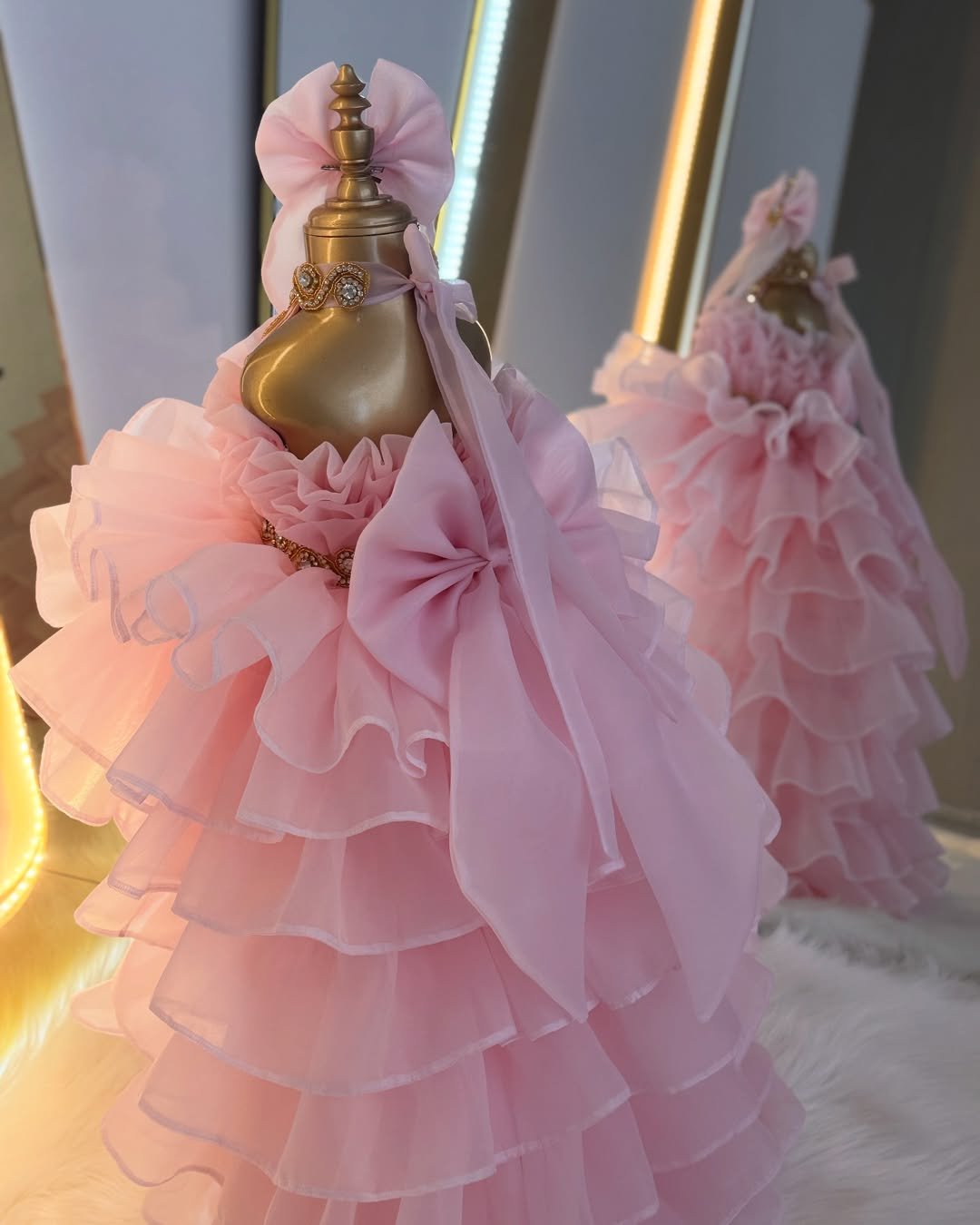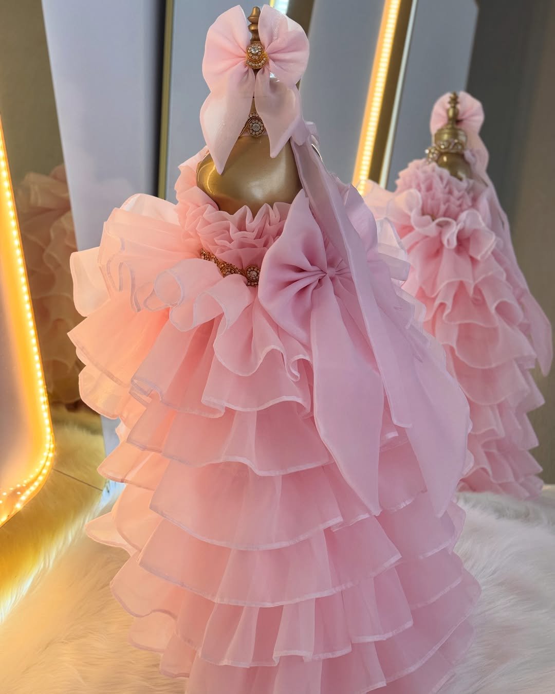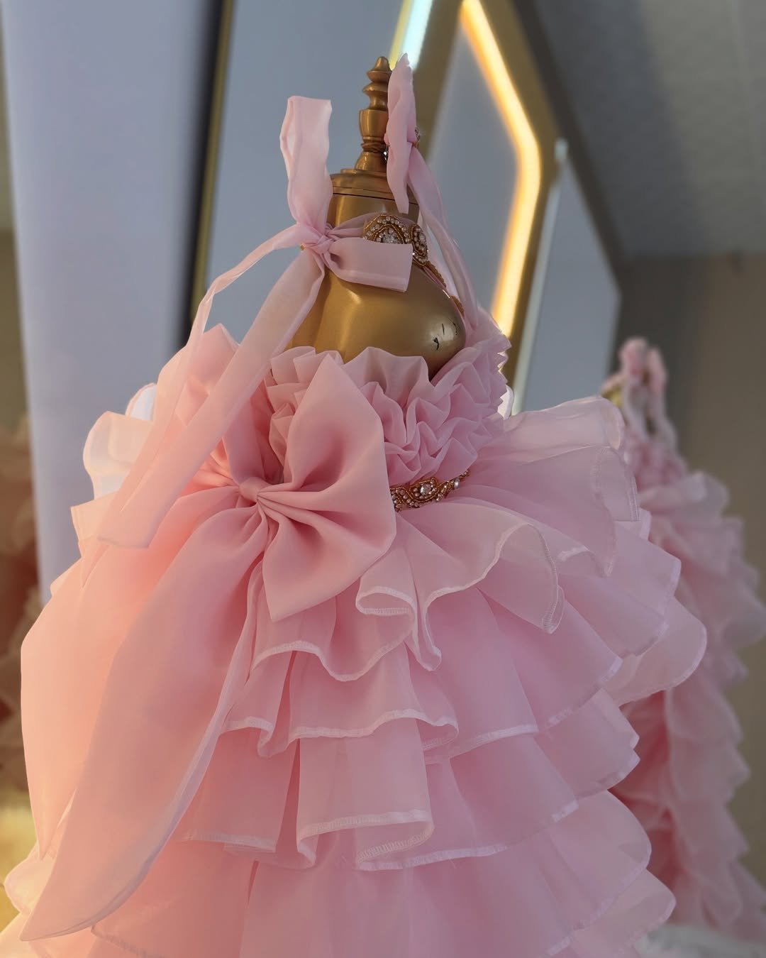 Voluminous Tulle Skirt: The skirt is made of multiple layers of soft tulle, giving the frock a full and fluffy silhouette.